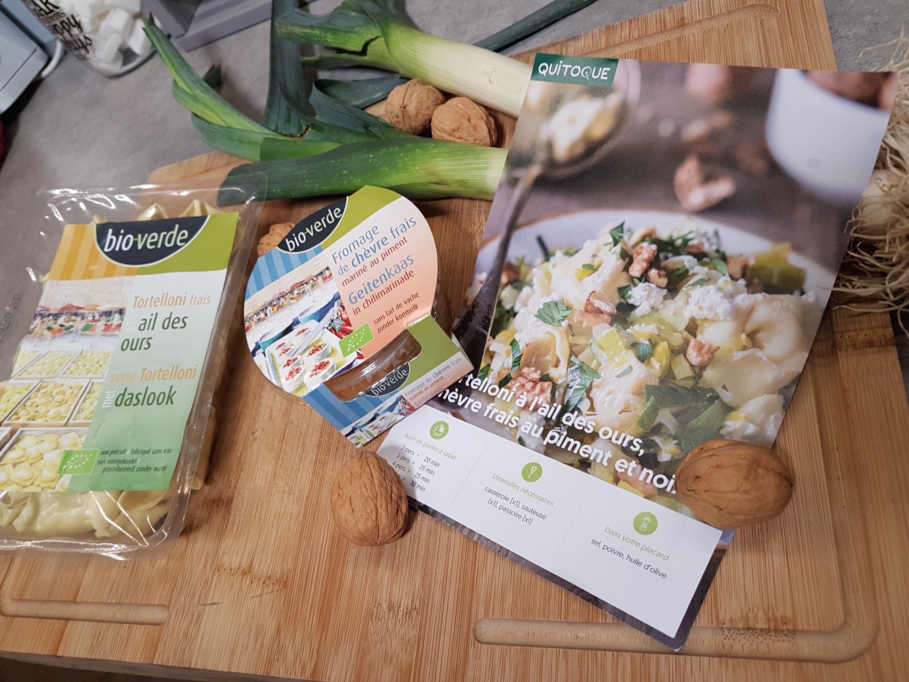 Il suffisait de laver et couper les poireaux et de les faire cuire en suivant la recette sur papier fournie avec le colis, de casser les noix et de couper le persil.