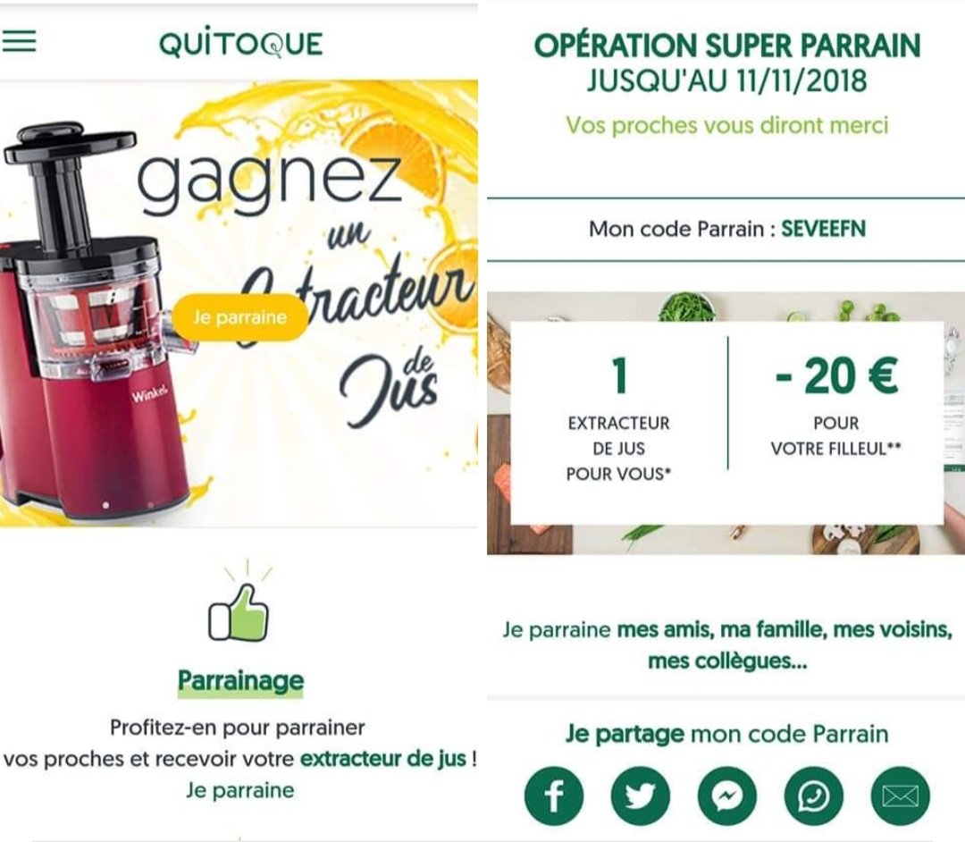 avec plaisir stéphanie moi je vais bientôt me reprogrammer une livraison aussi trois repas dans la semaine de temps en temps ça fera du bien il y a régulièrement des codes promo et avec le parrainage on a 20 € en moins sur une commande donc ça va ça vaut le coup