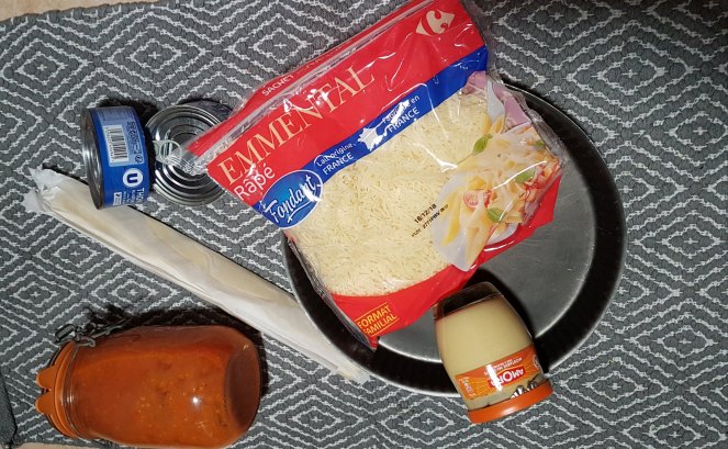 Émiettez votre thon sur la moutarde puis ajoutez de la sauce tomate.