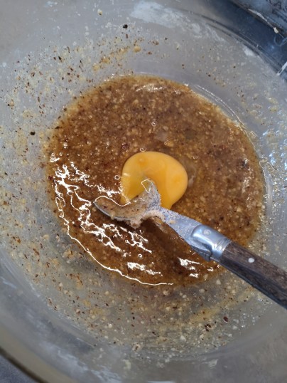 Si votre beurre sort du frigo, 30 sec au micro onde sera suffisant ! Ajoutez la poudre de noisette, mélangez. Ajoutez ensuite les œufs mélangez.