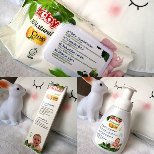On commence par des produits de soin ! Une crème de change, une mousse lavante corps et cheveux et des lingettes bébé tous de la gamme CitroGanix natural.