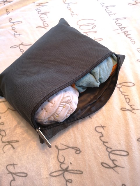 Je glisse aussi une pochette avec quelques couches et un mini paquet de lingette supplémentaires au cas ou !