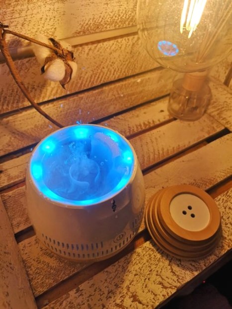 Pour ceux qui ne connaissent pas le principe des diffuseurs d’huiles essentielles, l’appareil transforme l’huile essentielle que vous aurez mis dans le réservoir avec l’eau en gouttelettes et molécules, puis va les rejeter dans l’air.