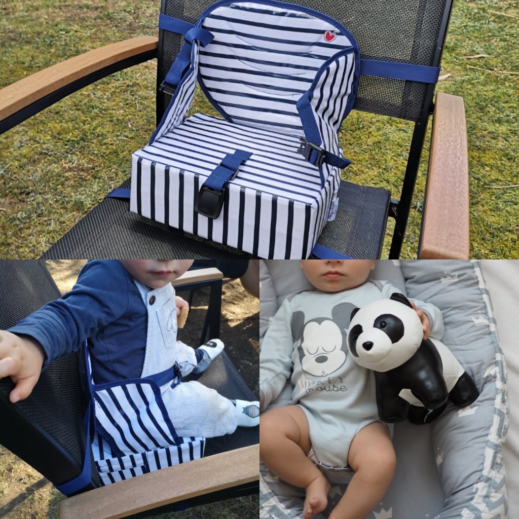 Nous avions passé la journée chez des amis et Léandre a pris son déjeuner et son goûter sur son rehausseur! En partant en week-end il est parfait également car ne prend pas de place dans la voiture !