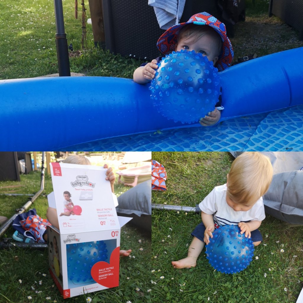 Sur le site de BabytoLove on retrouve de grosses balles tactiles à picots, effet sensoriel garanti ! Léandre l’adore car elle est super légère et nous faisons des séances de massage avec !