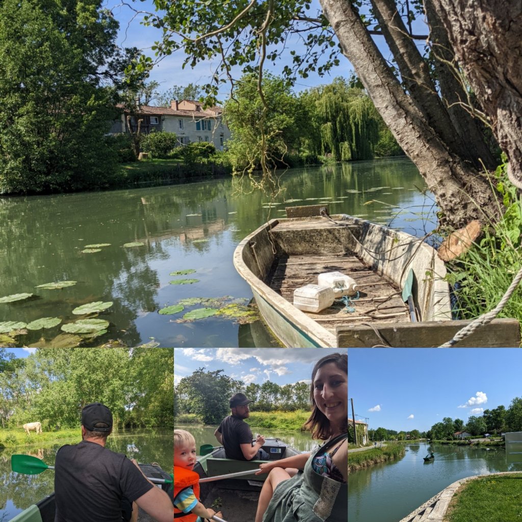 Nous avons loué une barque tout les trois pour une jolie balade en famille à la découverte du marais ! Nous avons vu des écrevisses, des hérons dans leurs nids, libellules demoiselles, écureuils ! Une balade vraiment apaisante et agréable ! Nous avons également fait du canoë gonflable avec nos amis sur Arcais qui est une très jolie ville aussi !