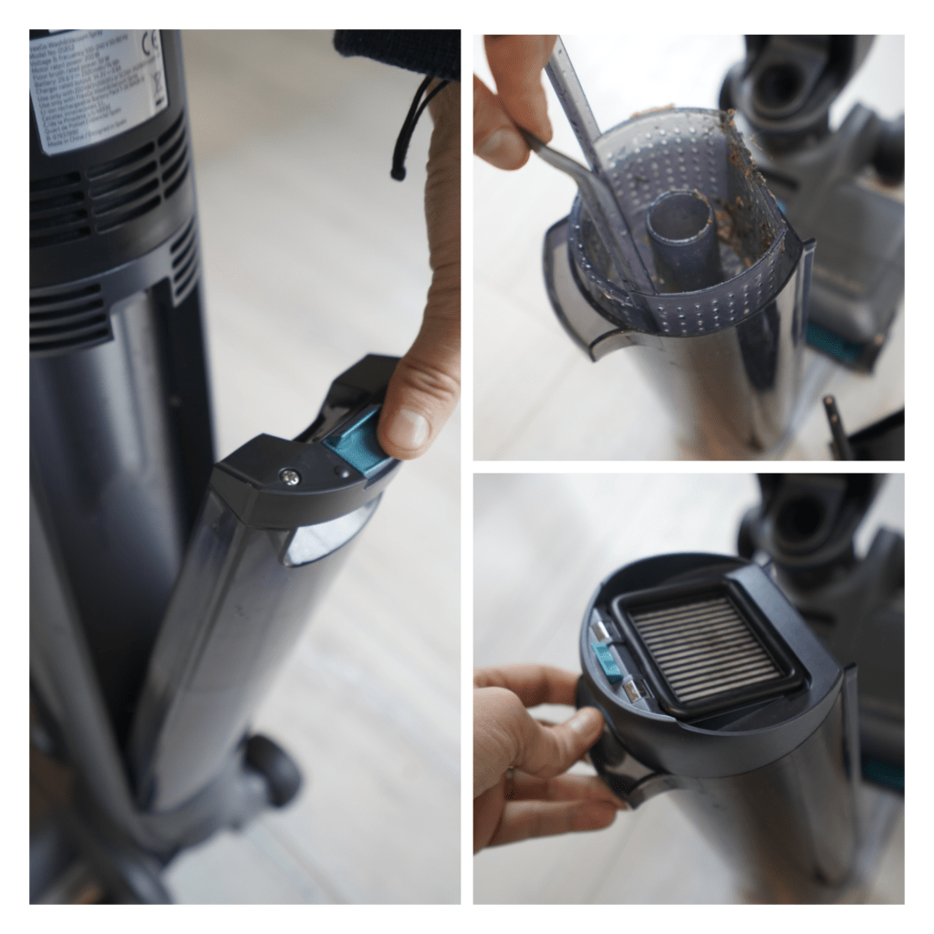 À chaque utilisation il faut bien le vider, nettoyer la cuve d’eau sale mais également sous le rouleau ou des saletés un peu plus encombrantes comme la paille de mes cochons d’Inde peuvent se coincer. Si vous ne videz pas l’eau sale va peut encrasser l’appareil et donner une mauvaise odeur !
